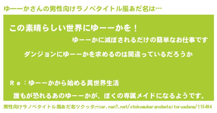 | 女子向けラノベタイトル風あだ名 | 『ゆーーかは平凡を望む』『闇のゆーーか』 |