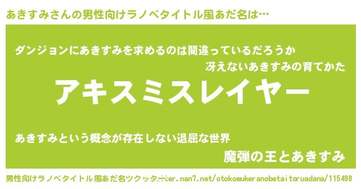 | 胡散臭い通販商品みたいなあだ名 | 『信頼と実績のペンダント…その名も「あきすみ」』 |