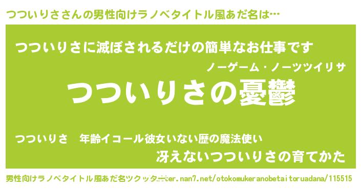 | 女子向けラノベタイトル風あだ名 | 『(仮)つついりさのやんごとなき事情』 |