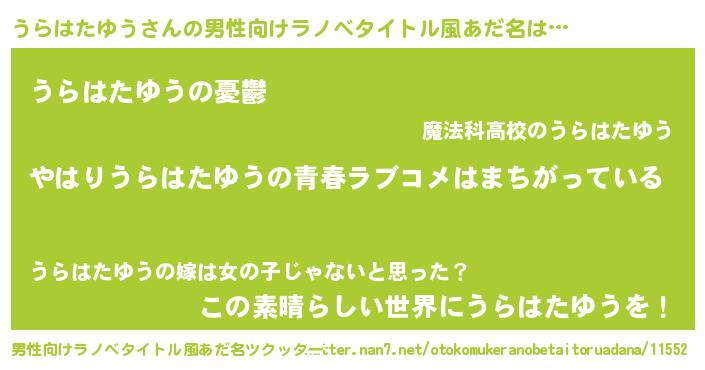 | 意味不明あだ名 | 『うらはたゆうフォーエバー』 |