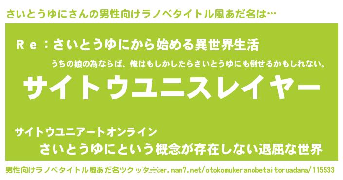 | 肩書あだ名 | 『さいとうゆに少尉』『さいとうゆに総統』 |