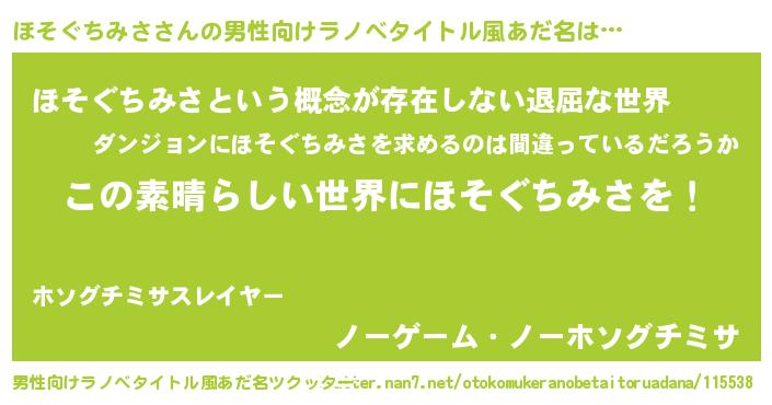 | 伝説のあだ名 | 『古文書に記された勇者ほそぐちみさ』 |