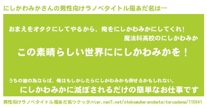 | 意味不明あだ名 | 『住所不定無職にしかわみか(68歳)』 |