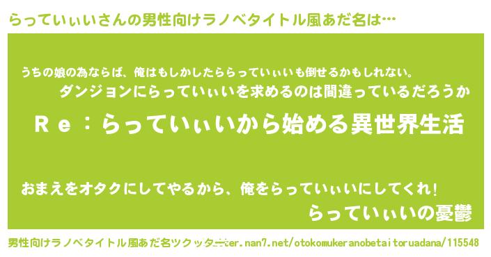 | 女子向けラノベタイトル風あだ名 | 『闇のらっていぃい』 |