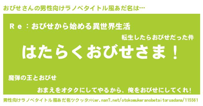 | 欧米人風あだ名 | 『アンジェラ・おびせ』『ダニエルおびせ』 |