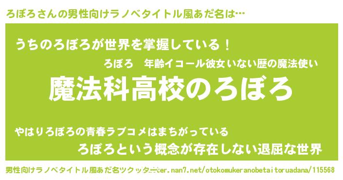 | 意味不明あだ名 | 『自称ろぼろ』『永久保存ろぼろ』 |