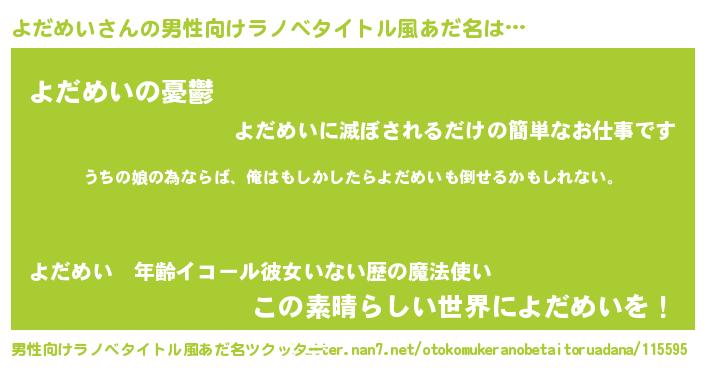 | 女子向けラノベタイトル風あだ名 | 『よだめいの婚約者』 |