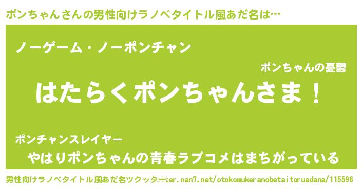 | ヒーロー風カッコイイあだ名 | 『友情の使者ポンちゃん』『仮面ポンダー』 |