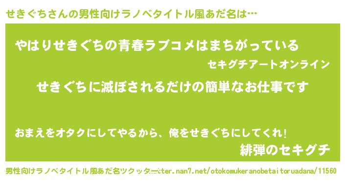 | 胡散臭い通販商品みたいなあだ名 | 『運命の人と巡り会える高級そうな壺…その名も「せきぐち」』 |