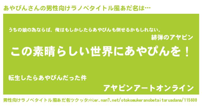 | ヒーロー風カッコイイあだ名 | 『仮面アヤダー』『ウルトラあやぴんマン』 |