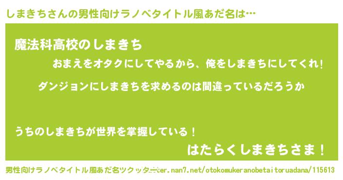 | 胡散臭い通販商品みたいなあだ名 | 『信頼と実績のネックレス…その名も「しまきち」』 |