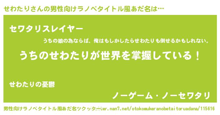 | ヒーロー風カッコイイあだ名 | 『天空の使者せわたり』『幻影騎士セワ』 |