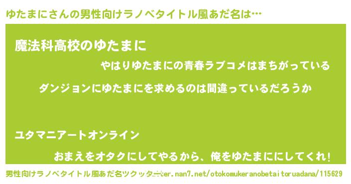| 女子向けラノベタイトル風あだ名 | 『ゆたまには平凡を望む』 |