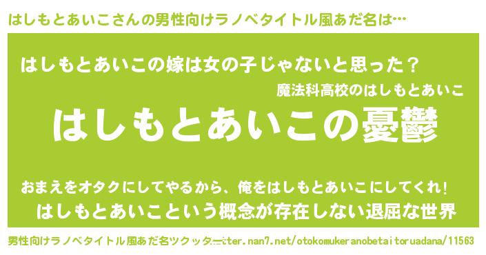 | 女子向けラノベタイトル風あだ名 | 『はしもとあいこ姫と円卓の騎士』 |