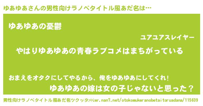 | 女子向けラノベタイトル風あだ名 | 『ゆあゆあの雑貨屋さん』 |
