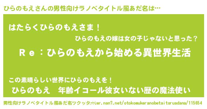 ひらのもえさんの男性向けラノベタイトル風あだ名をツクッター!