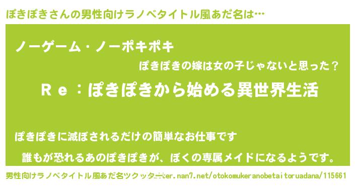 ぽきぽきさんの男性向けラノベタイトル風あだ名をツクッター!