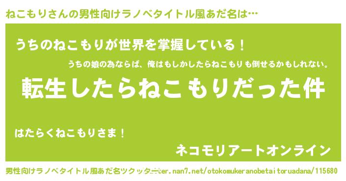 | 意味不明あだ名 | 『たけのこ科ねこもり属』『自称ねこもり』 |