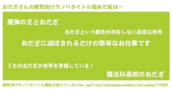 | 意味不明あだ名 | 『住所不定無職おだざ(74歳)』『自称おだざ』 |