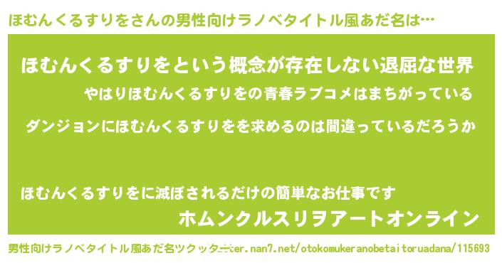 | 意味不明あだ名 | 『とにかく怪しいほむんくるすりを』 |