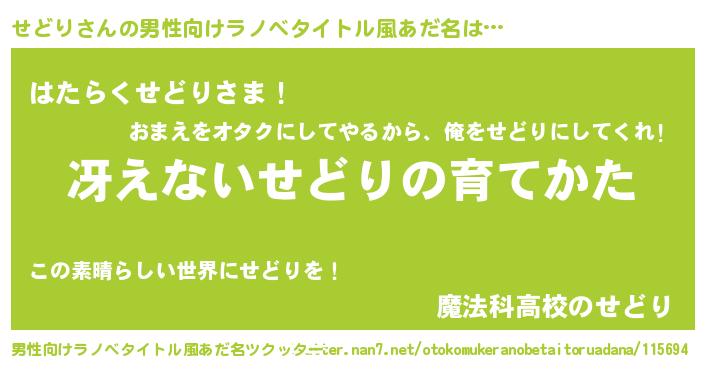 | ヘコむあだ名 | 『せどり(震え声)』『せどお』『牛乳』 |
