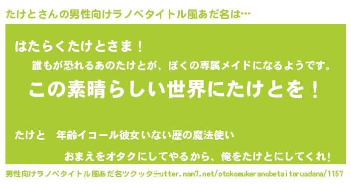 | 意味不明あだ名 | 『住所不定無職たけと(40歳)』 |