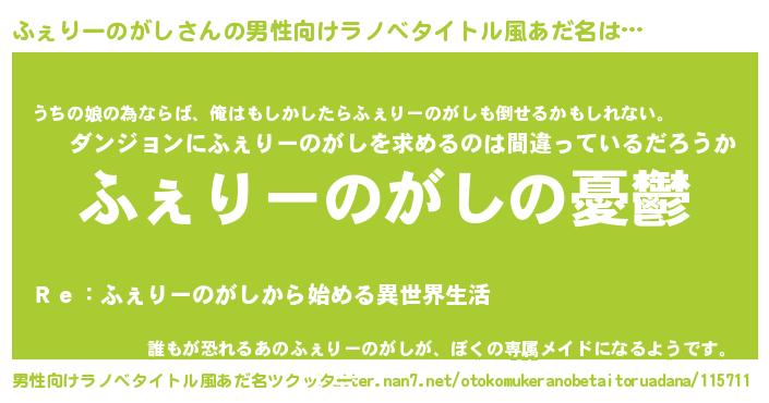| 胡散臭い通販商品みたいなあだ名 | 『モテモテ間違いなし水晶球…その名も「ふぇりーのがし」』 |
