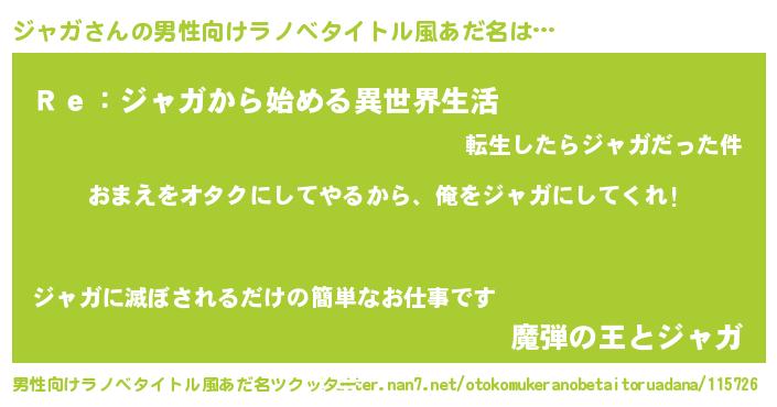 | 料理風あだ名 | 『ジャガのトマト煮』『ジャガごはん』 |