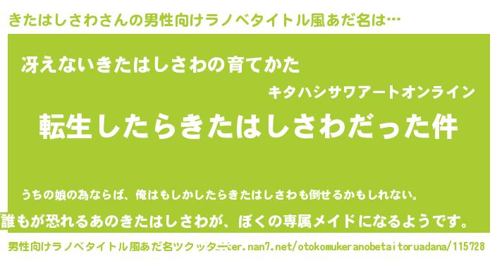 | 女子向けラノベタイトル風あだ名 | 『きたはしさわの玉の輿計画!』 |
