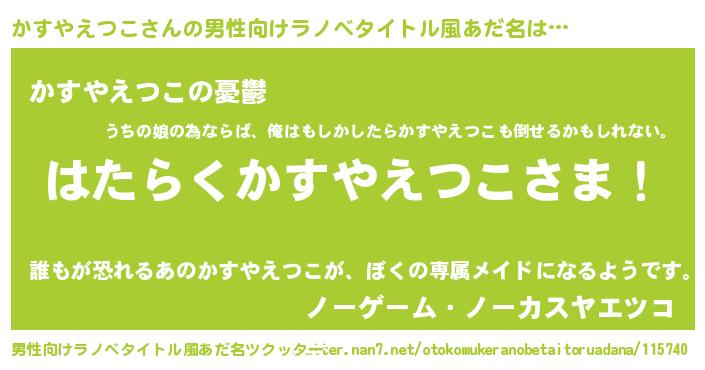 | 胡散臭い通販商品みたいなあだ名 | 『モテモテ間違いなし水晶球…その名も「かすやえつこ」』 |