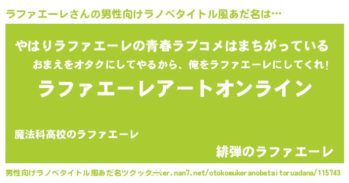 | ヘコむあだ名 | 『ラフもー』『豆乳』『ラフ太郎』 |