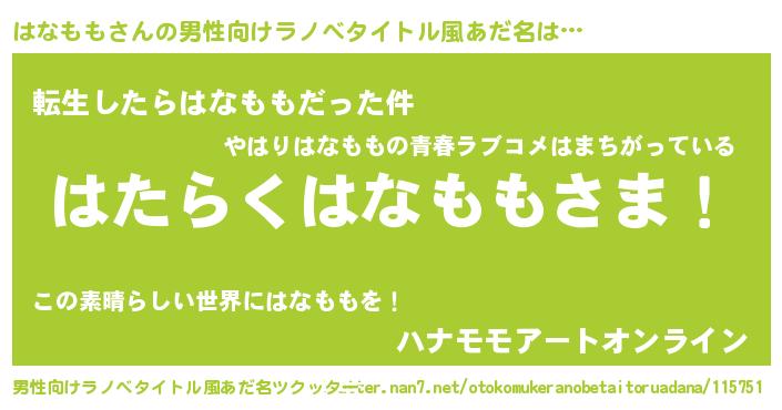 | 胡散臭い通販商品みたいなあだ名 | 『必ず成功する霊験あらたかなお札…その名も「はなもも」』 |