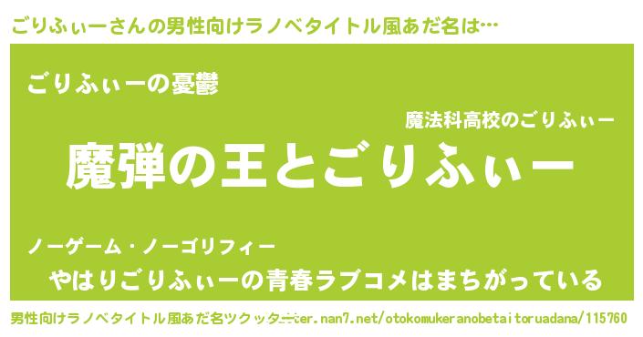 | 意味不明あだ名 | 『住所不定無職ごりふぃー(65歳)』 |