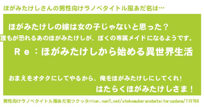 | ヒーロー風カッコイイあだ名 | 『最強戦士ホガミタケシ』『魔戒騎士ホガ』 |