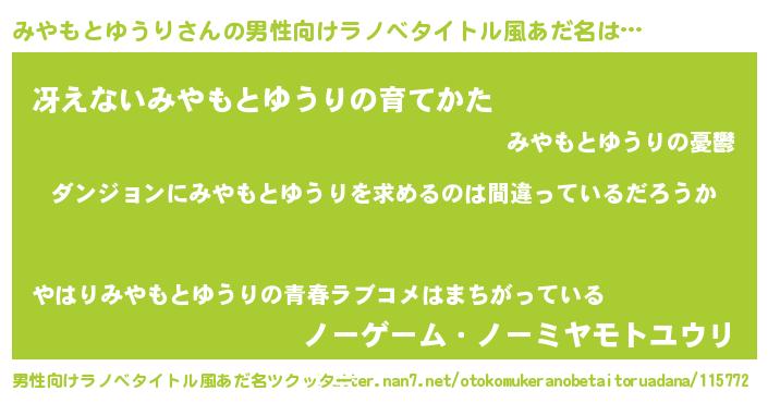 | 女子向けラノベタイトル風あだ名 | 『みやもとゆうりは平凡を望む』 |