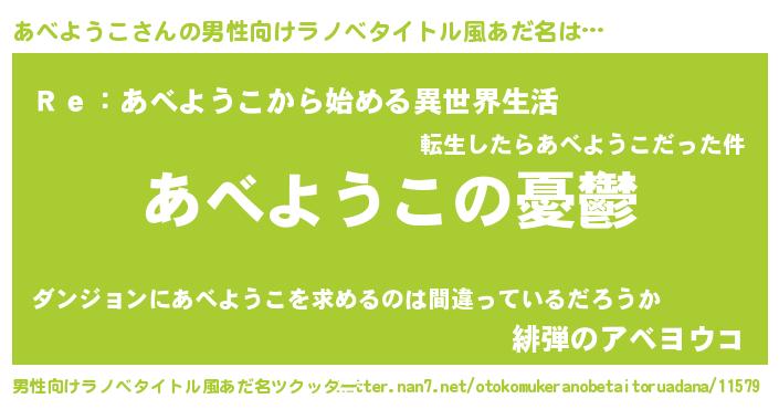 | 女子向けラノベタイトル風あだ名 | 『(仮)あべようこのやんごとなき事情』 |