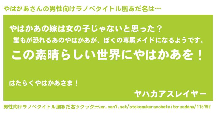 | 意味不明あだ名 | 『住所不定無職やはかあ(86歳)』 |
