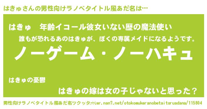 | 女子向けラノベタイトル風あだ名 | 『死神はきゅの再婚』『はきゅ様がみてる』 |
