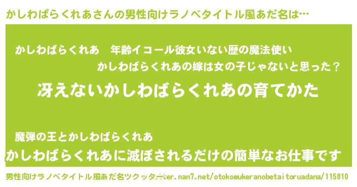 | 伝説のあだ名 | 『解き放たれた魔法使いかしわばらくれあ』 |