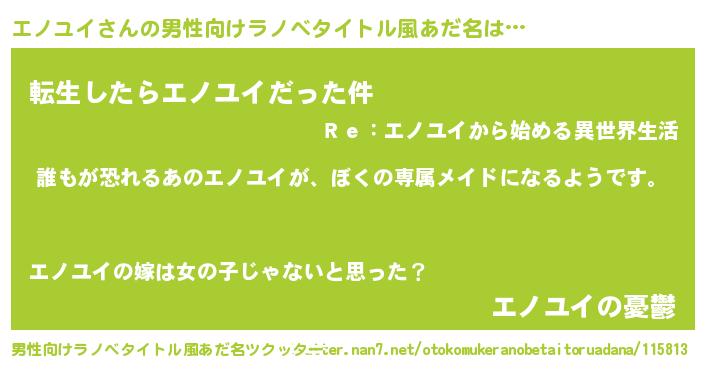 | 胡散臭い通販商品みたいなあだ名 | 『来世でも幸せになれる健康食品…その名も「エノユイ」』 |