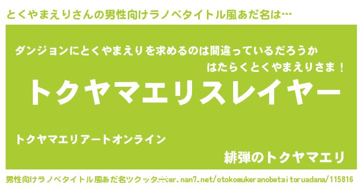 | 胡散臭い通販商品みたいなあだ名 | 『信頼と実績のサプリメント…その名も「とくやまえり」』 |