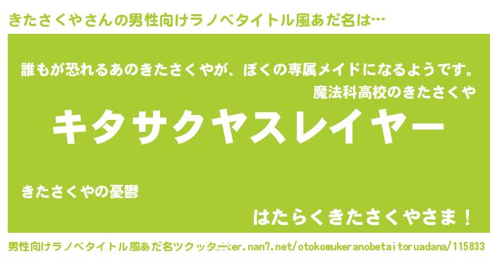| ヒーロー風カッコイイあだ名 | 『ネオキタサクヤ』『スーパーキタサクヤ』 |