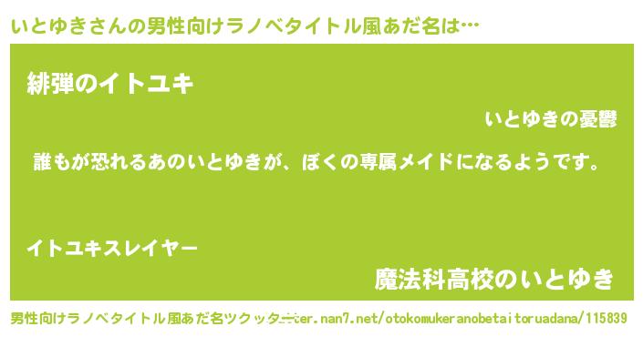 | 女子向けラノベタイトル風あだ名 | 『異世界でカフェいとゆきを開店しました。』 |