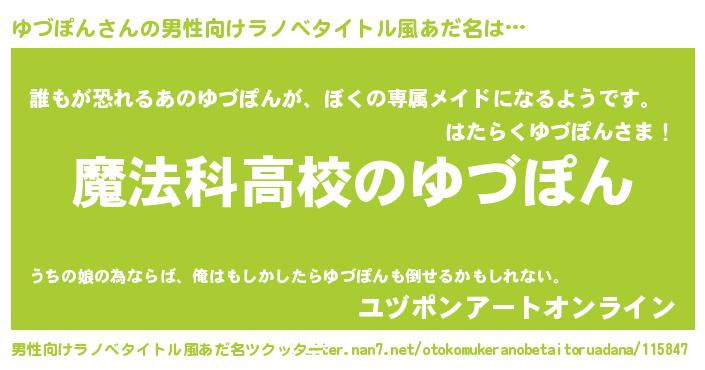 | 女子向けラノベタイトル風あだ名 | 『ゆづぽんなんてお断りですっ。』 |
