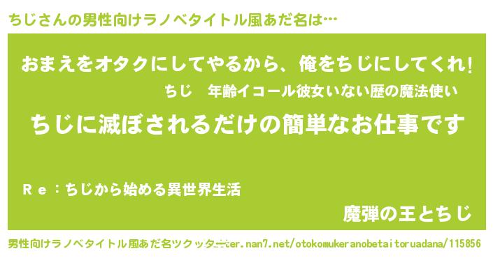 | 伝説のあだ名 | 『救世主となる技術者ちじ』 |