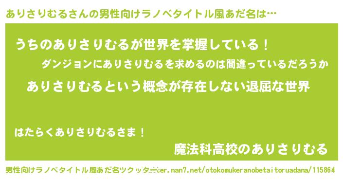 | 胡散臭い通販商品みたいなあだ名 | 『絶対に幸福をもたらす健康食品…その名も「ありさりむる」』 |