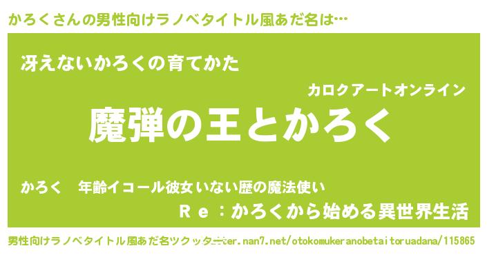 | 意味不明あだ名 | 『住所不定無職かろく(50歳)』『自称かろく』 |