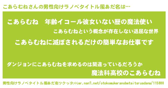 | 伝説のあだ名 | 『古より伝わる吟遊詩人こあらむね』 |
