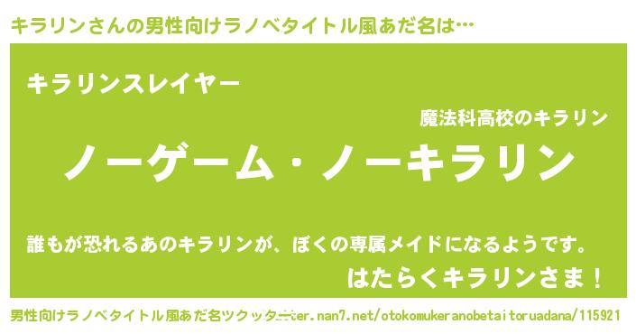 | ファンタジー風あだ名 | 『クインキット』『ユリキラヴァット』 |