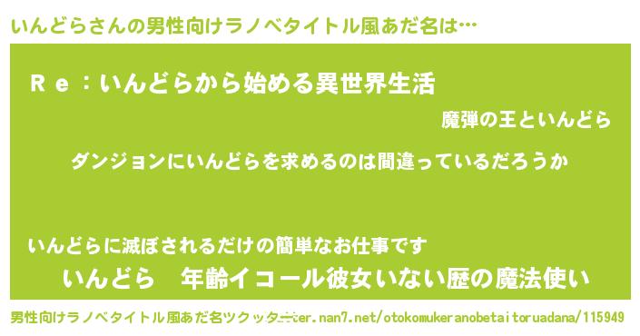 | 胡散臭い通販商品みたいなあだ名 | 『信頼と実績のサプリメント…その名も「いんどら」』 |